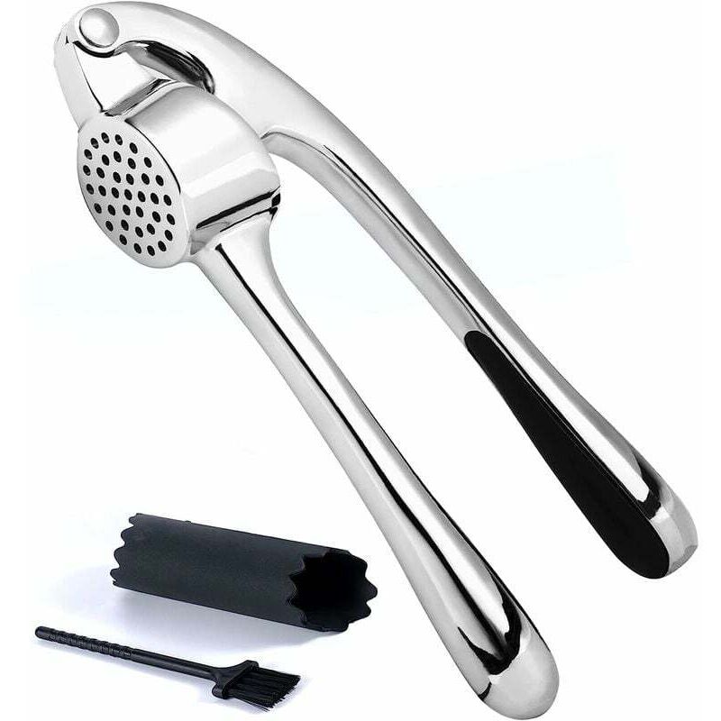 Pressione massima e minima: lo pressurizzatore per aglio ha 37 piccole teste di chiodi che si adattano ai fori nella camera ed è ideale per massimizzare l'efficienza di spremitura dell'aglio, sia che si tratti di unghie di chiodi di garofano non sbucciati o sbucciati, per schiacciare facilmente ogni spicchio e spingere il aglio attraverso i fori sottili per produrre una pasta pronta all'uso, mentre la buccia è facile da tenere all'interno. Soluzione semplice: questo kit per spremere l'aglio include un inserto in silicone per l'aglio per ridurre al minimo il contatto diretto con i chiodi di garofano, ridurre la difficoltà di rimuovere l'odore di aglio dalle mani, inserire un lembo d'aglio alla volta e far rotolare il tubo sul bancone in pochi secondi Facile da usare - Evita la pressione scegliendo un tritacarne ergonomico per aglio, facile da bloccare, facile da usare e non sembra di tenere in mano l'intensificatore, ideale per cucine commerciali e domestiche Durevole: lo zin è il