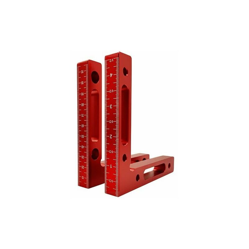 Ampia applicazione: set di maschere ad angolo retto per falegnameria, uso professionale per l'assemblaggio e il fissaggio fai-da-te di scatole, cassetti, armadi, telai, mobili, ecc. Perfetto per allineare i ripiani. Mantieni un quadrato perfetto durante il montaggio di telai, armadi o qualsiasi scatola! Alcuni falegnami trovano persino utile incorporarli nelle loro maschere e dispositivi. Soddisfazione, alta utilità, efficienza squadrata. Design professionale e facile da usare: progettato per essere attaccato a scatole, cornici, scaffali e per angoli esterni, ecc., per aiutare con l'ortogonalità durante l'incollaggio. Posiziona un quadrato nell'angolo dei due pezzi di brodo che devi squadrare e fissalo con un set di pinze. Disponibile in 12 cm/4,7" e viene fornito in un set di due. Angoli a 90° perfetti: sarà un gioco da ragazzi creare gradi di rifinitura ad angolo retto di 90° di precisione, così essenziali per garantire risultati di progetto equilibrati. Stringere rapidamente e