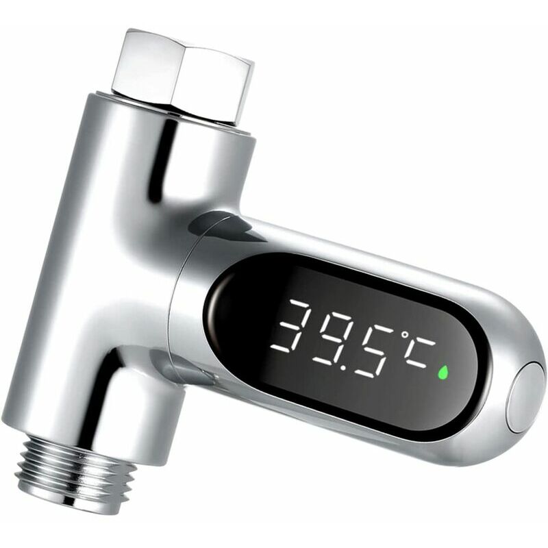 Installazione semplice: dado da 1/2 pollice, compatibile con la maggior parte delle attrezzature per doccia, facile da installare senza bisogno di attrezzi. Con questo termometro, possiamo fare la doccia con la giusta temperatura dell'acqua, particolarmente adatta per famiglie con bambini. . Nessuna batteria richiesta: sistema idroelettrico integrato su piccola scala per generare energia, nessuna batteria richiesta o rischio di perdita di energia. Si spegnerà automaticamente dopo l'assenza di flusso d'acqua. . Funzione di memoria: lo schermo visualizza anche l'indicatore (blu/verde/rosso) per aiutarti a scegliere la temperatura dell'acqua appropriata. Chip di memoria integrato per tenere traccia del tempo di nuoto (fino a 99 ore e 59 minuti). . Monitor ad alta precisione: sensore di temperatura integrato ad alta precisione, che fornisce un intervallo di misurazione di 0 ~ 100 C e una precisione di 0,5 C. Display Celsius/Fahrenheit selezionabile. . Display della temperatura a 360 LED