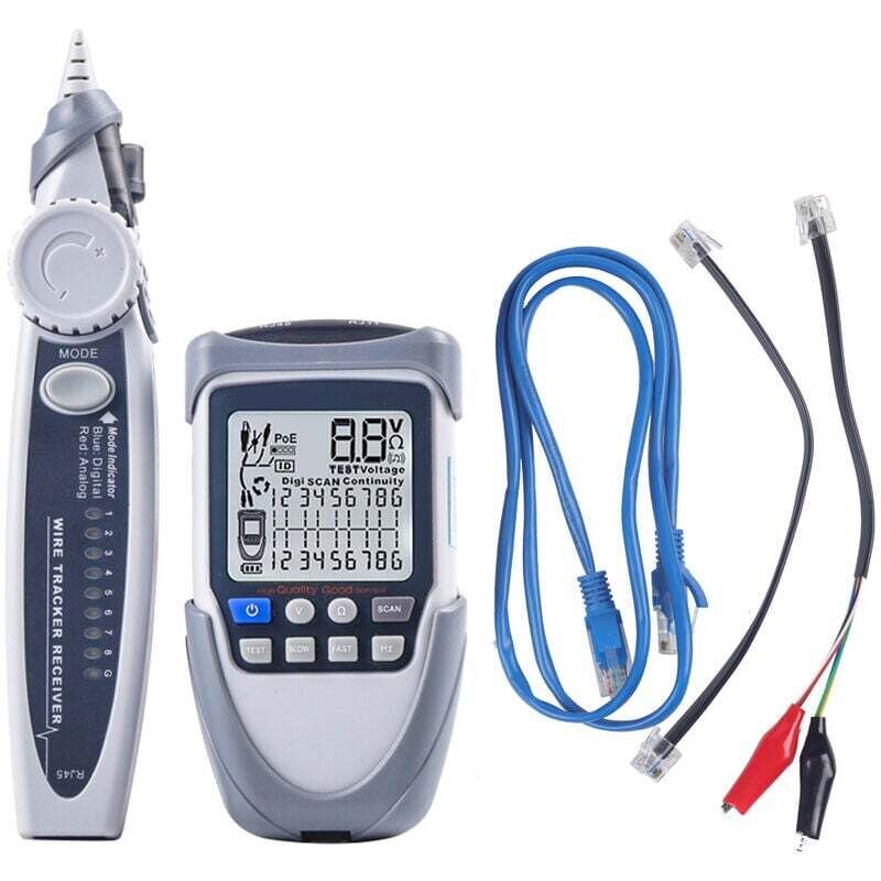 Questo tester per cavi di rete portatile è uno strumento utile per tutti i tipi di linee di comunicazione e per il personale tecnico di manutenzione. Ti aiuta a trovare in modo rapido ed efficiente il cavo di cui hai bisogno tra un gran numero di cavi. Questo prodotto può essere ampiamente utilizzato in sistemi telefonici, reti di computer, reti video, ingegneria delle comunicazioni ottiche e altre occasioni di linee metalliche. Se ne hai bisogno, vieni a provarlo, non ti deluderà. Specifiche: Materiale: ABS Tipo: ET612/ET613 (opzionale) Alimentazione: Trasmettitore: 3 batterie AA (NON INCLUSE) Ricevitore: 9V (NON INCLUSO) Tracciamento cavi analogici: √ Tracciamento cavi digitali: √ Tracciamento cavi con PoE Supporto: √ Identificazione delle coppie di cavi e qualità dei collegamenti dei cavi: √ Controllo della polarità della tensione della batteria: √< br/> Misurazione della tensione della batteria (solo per riferimento ): √ Controllo della polarità della tensione PoE: √ Misurazione