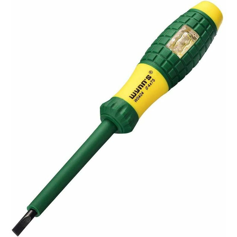Cacciavite a penna tester elettrico 220V con sonda di rilevamento della potenza del test di tensione Tensione di prova: 220V, colore: giallo e verde misto Lunghezza totale: 75mm | Diametro punta: 4 mm Materiale: acciaio al cromo vanadio, ABS + TPR Contenuto: 1 penna di prova