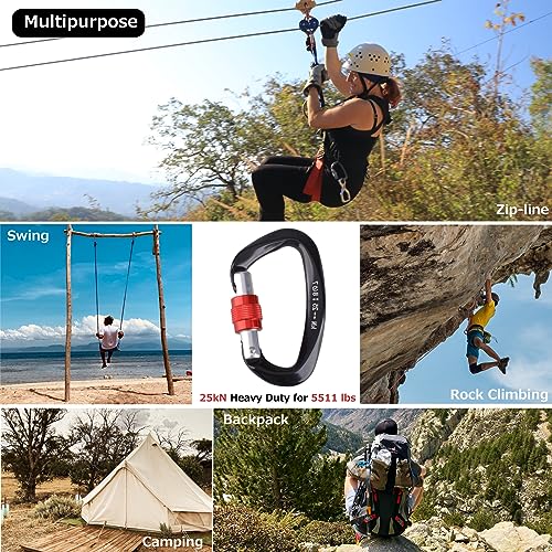 Azarxis Moschettoni Arrampicata 25 KN Moschettone in Alluminio Moschettone Alpinismo Discensore Arrampicata moschettone con ghiera (Nero - 4 Pezzi)