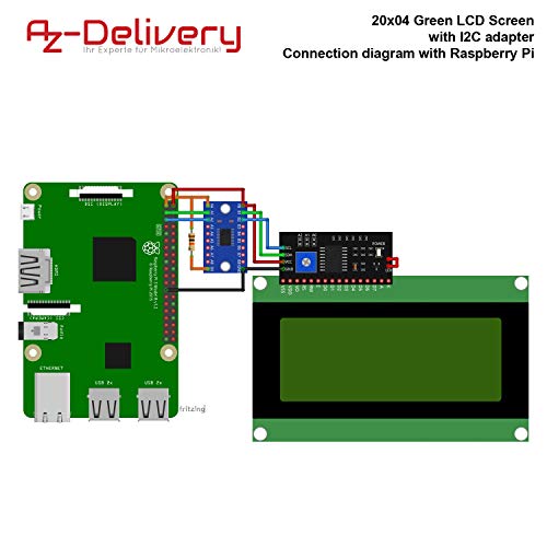 AZDelivery HD44780 2004 LCD Bundle Display Verde 4x20 Caratteri Neri con Interfaccia I2C compatibile con Arduino e Raspberry Pi incluso un E-Book!