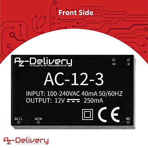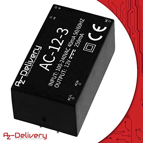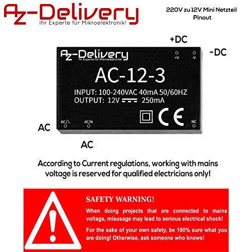 AZDelivery 3 x Mini Trasformatore Adattatore 220V a 12V compatibile con Raspberry Pi incluso un E-Book!