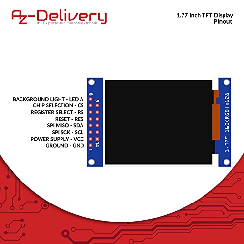 AZDelivery 5 x 1.77 pollici SPI TFT Display 128x160 Pixel ST7735 2.7V - 3.3V compatibile con Arduino e Raspberry Pi incluso un E-Book!