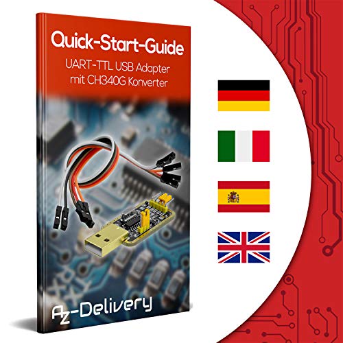 AZDelivery UART-TTL USB Adattatore con Convertitore CH340G 3.3V e 5V con Cavo Jumper compatibile con Arduino incluso un E-Book!