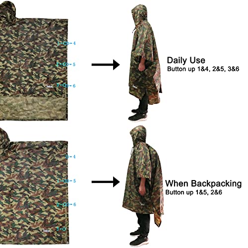 【Grande Capacità】 - Maggiore design dello spazio sul retro, può ospitare zaini di grande capacità, dopo aver aperto il poncho, la dimensione è di 220 * 145 cm (lunghezza * larghezza), adatto per uomini e donne oltre 160 cm di altezza.