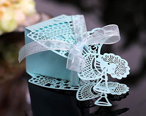Azexcy 30 Pezzi Scatola Regalo di Nozze con Nastrino, Bomboniere Comunione Scatoline Portaconfetti Confezione Confetti Scatole Caramella per Matrimonio, Blu
