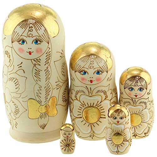 Azhna 5 pz 15 cm Souvenir Matrioska Home Decor Collection Bambola Nidificante Bambola Russa Legno Bruciata e Dipinta a Mano Bambola In Legno Impilabile Bambola, Oro