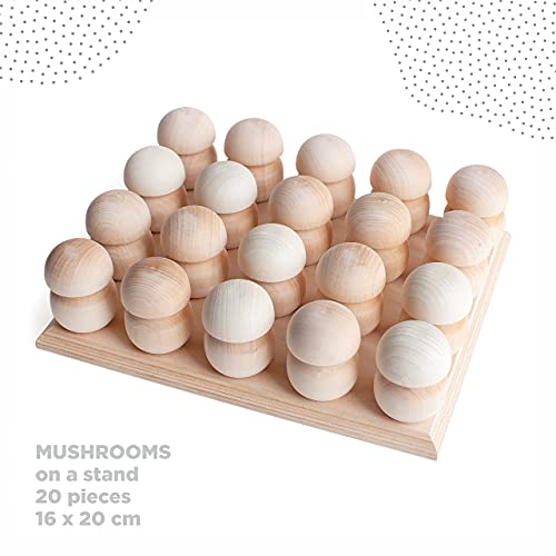 Azhna fai da te Unfinished funghi di legno Set su un supporto non verniciato in bianco Figurine per la pittura, pirografia, Decoupage Artigianato (20 pz)