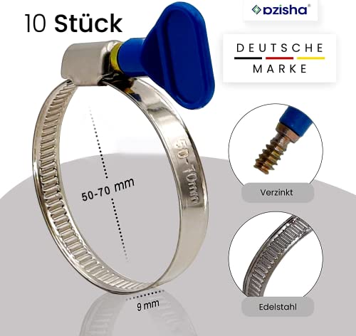 AZISHA Fascette Metalliche Stringitubo Set - 50-70mm Fascette Stringitubo Acciaio Inox - Multiuso Fascetta Stringitubo - Fascetta Metallica Per Tubi Acqua, Gas, Piscina, Lavatrice, Giardino -10 Pezzi