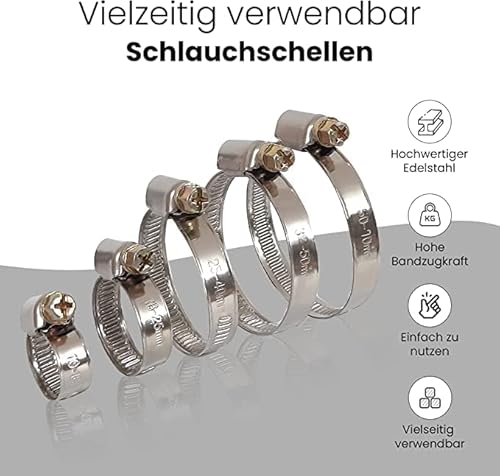[FASCETTE PER TUBI IN ACCIAIO INOX VERSATILI]: Questo Set Di Fascette Inox È Adatto Per Lavatrici, Lavastoviglie, Piscine E Automobili. Queste Fascette Metallo Sono Anche Adatte Per Collegare Tubi Da Piscina, Pompe Per Filtri A Sabbia Per Piscine, Tubi Da Laghetto, Tubi Da Giardino E Molto Altro.