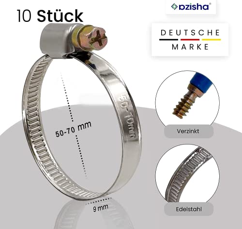 Azisha Fascette Stringitubo Acciaio Inox - 10 Pezzi 50-70 mm Fascette Metalliche Stringitubo - Multiuso Fascette Stringitubo Inox Per Tubi Acqua, Gas e Piscine