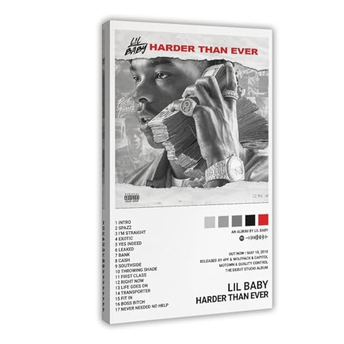 Azizat Poster con copertina di album "Lil Baby" con copertina di album "Harder Than Ever", decorazione artistica da parete per soggiorno, camera da letto, 50 x 75 cm