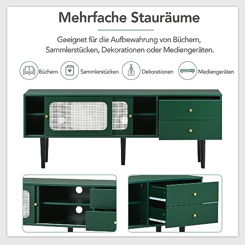 Azkoeesy Mobile TV da 160 cm, elegante mobile basso con 2 ante scorrevoli in rattan, 2 cassetti, gamba in metallo (verde)