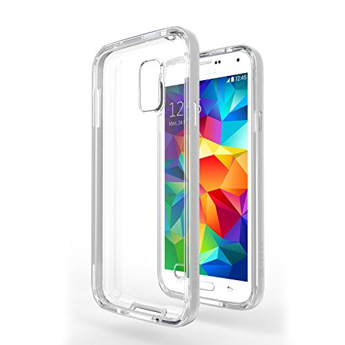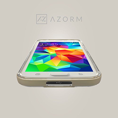 Azorm Custodia per Samsung Galaxy S5 Neo, Hybrid Edition Smartphone Cover, Bumper Case Antiscivolo e Antigraffio, Parte Posteriore di Silicone in Trasparente - Argento (Effetto Metallo)