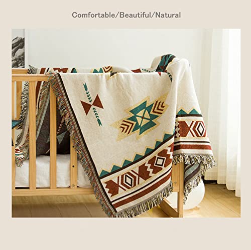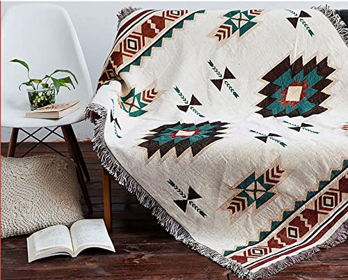 Aztec Coperta Divano Cotone Cotone Intrecciato a Maglia Tribale Popolare Geometric Pattern Coperta Decorativa per Divano con Nappe Adatti per Divano/Letto/da Esterno(Size:150x210cm/ 59x82.6in)