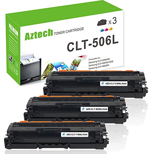 Aztech 3 Pack Compatibile CLT-C506L CLT-Y506L CLT-M506L Cartuccia di toner per Samsung CLP 680 CLP-680ND 680DW, Samsung CLX 6260 CLX-6260FR 6260FD 6260ND 6260FW 6260DW