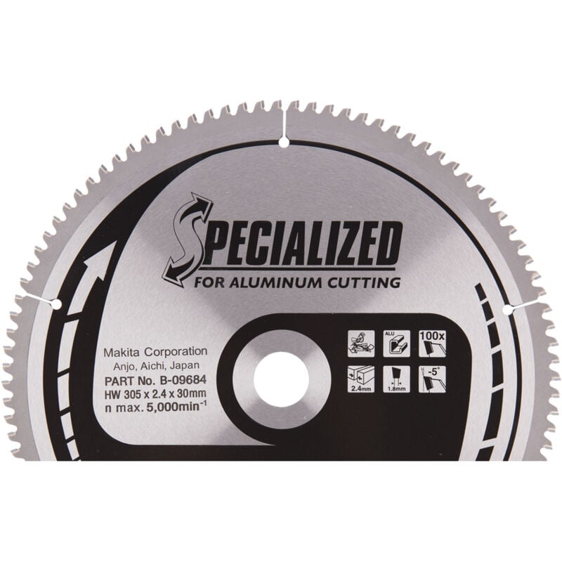 B-09684 - Disco para ingletadora eSPecial aluminio 305x2.3 llanta 1.8 mm 100z -5 grados eje de 30 - Makita