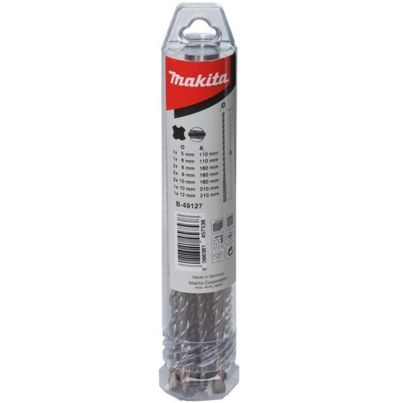 Codice: B-49127 Marca: MAKITA. Set punte HM V-PLUS per martelli SDS-PLUS con 2 taglienti Power Breaker per foratura ad alta velocità, anche con martelli perforatori a batteria e comportamento di perforazione ottimizzato quando si colpisce il rinforzo. La punta di centraggio consente una foratura precisa su superfici lisce. La confezione contiene: Ø 5/6mm x 110mm, 2x Ø 6/8/10mm x 160mm e Ø 10/12 x 210mm.