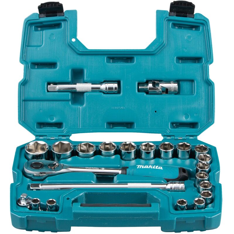 MAKITA B-65589 Set di chiavi a cricchetto e bussole (23 pezzi) 1/2" Set con chiave a cricchetto, bussole, adattatori, prolunghe... < strong> Vantaggi per l'utente Prolunghe da 2 1/2“. Adattatore da 1/2" a 3/8". Giunto universale 1/2” 19x40mm, 20x40mm, 21x40mm, 22x40mm, 23x40mm, 24x40mm, 27x40mm, 30x40mm, 32x40mm). Specifiche Descrizione - Set di chiavi a cricchetto e bussole - < /li> Inserimento - 3/8" - Unità - 1
