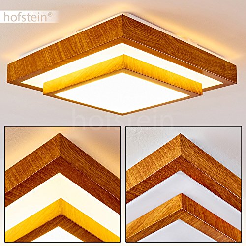 B0799MQRS2 Lampada a soffitto LED Sora, lampada a soffitto angolare in metallo con ottica moderna in legno, 18 Watt, 1380 Lumen, 3000 K, IP44, adatta anche per il bagno
