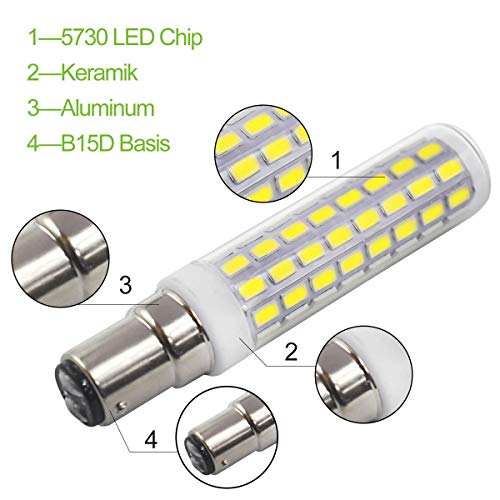【 Risparmio energetico 】 AC 100-265 V B15D 7,5 W 3000 K luce bianca calda, super luminosa, basso consumo energetico. Assicuratevi un sostituto ideale di lampadine alogene da 70 W e 120 W. Risparmia oltre il 90% sulla bolletta elettrica.
