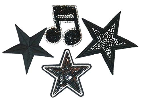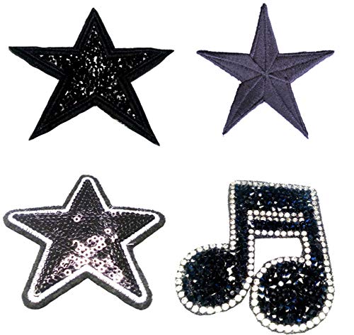 B2SEE Toppe Toppa termoadesive Stella Stelle Nere Ricamate termoadesive Scintillanti da Cucire con Paillettes Applicazioni con Strass Kit 4 Pezzi Stelle Nere 7-10 cm termoadesivi