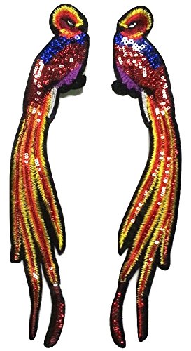 Toppe Toppa Uccello grandi termoadesive con paillettes da cucire termoadesive Patch termoadesiva Applique applicazioni con paillette " 2 pezzi - Uccelli di Paradiso 32 x 7 cm un pezzo "