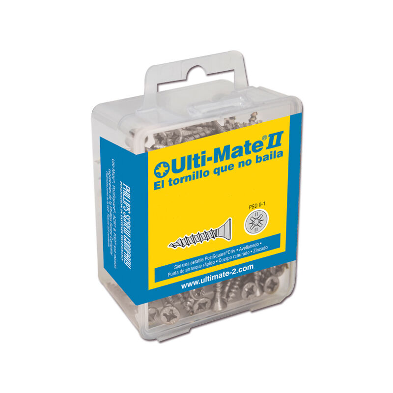 BOX L Finitura BICROMATA (più resistente all'ossidazione rispetto alla semplice zincatura) Testa di diametro ridotto per un utilizzo ideale in ferramenta. Testa piatta - PoziSquare (PSD) con rientranza anti-camout ACR (sedile antiscivolo) Testa