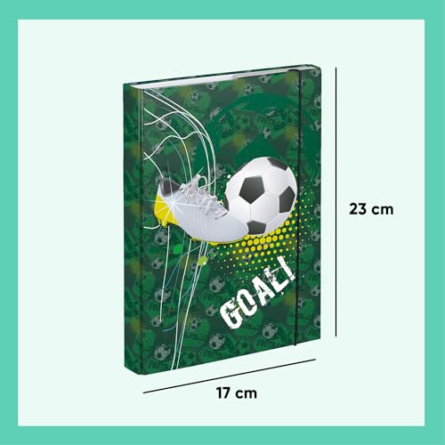 Baagl Cartellina per cartelle scolastiche, formato A5, con elastico e patta interna, raccoglitore per quaderni, con elastico per ragazzi (palla da calcio)