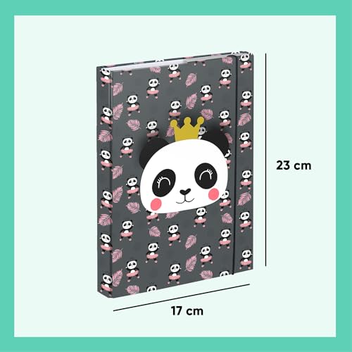Baagl Raccoglitore per cartelle scolastiche, formato A5, per bambini, con elastico e patta interna, raccoglitore per quaderni, con elastico per ragazze (Panda)
