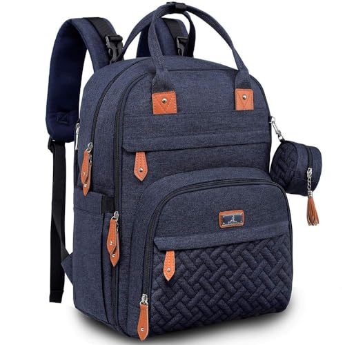 BabbleRoo Zaino per pannolini con fasciatoio per neonati, grande capacità, borsa per pannolini, multifunzione, impermeabile, da viaggio con custodia per ciuccio staccabile, unisex (blu marino)