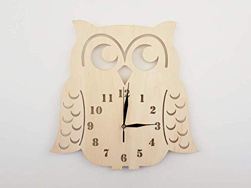 BABEES Orologio da parete per bambini, motivo: gufo, senza ticchettio, per cameretta dei bambini, meccanismo silenzioso, decorazione da parete (naturale)