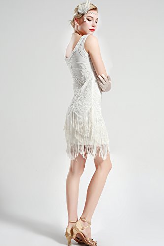 BABEYOND Vestito Gatsby Donne 1920s Abiti Vestito Anni 20 Donna Flapper Dress 1920s Vestito da Sera Paillette Impreziosito Frange Gatsby Dress Senza Maniche Bianco