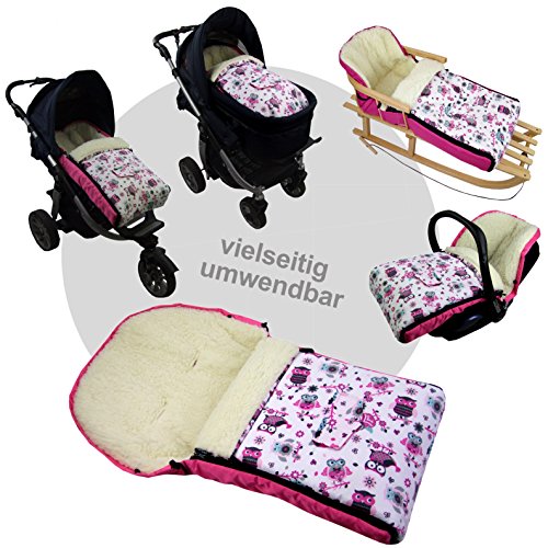 Babies-sogni * combinazione pacchetto* MUFF + winter COPRIGAMBE 108 cm - gufi $in 5 - farinaccio lana per passeggino, passeggino, rimorchio bici - lana - scaldino della mano