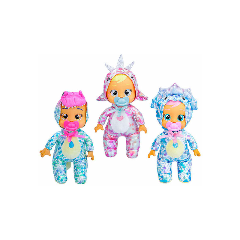 Le nuove Cry Babies Tiny Cuddles Dinos sono bambole dinosauro dal mondo Icy World_ Hanno il corpo morbido e una dimensione perfetta per i piú piccoli. Ci sono 6 diverse bambole morbide da collezionare che piangono lacrime vere quando premi la loro testa. Inoltre, ognuna ha un ciuccio abbinato. Prodotto assortito. ATTENZIONE_ Questo prodotto viene distribuito dal produttore in modelli e/o colori assortiti in modo del tutto casuale. Non ci è possibile proporre un modello e/o un colore in particolare. Confermando l_ordine, riceverete uno dei modelli in funzione dello stock disponibile. Vi ringraziamo per la comprensione. Il prezzo indicato vale per un singolo prodotto.