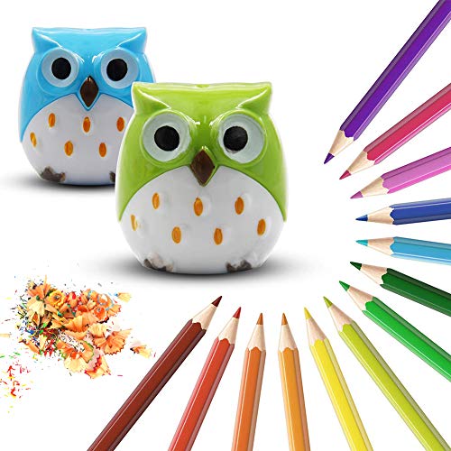 Babioms 12-Pezzi Temperamatite Doppio Foro Del Fumetto Gufo Serbatoio Temperino Cancelleria, Idea Pensierino Regalino Festa Compleanno Bimbi per Bambini Della Famiglia Della Scuola (Colori Casuali)