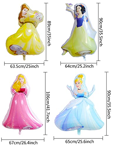 Babioms 4Pcs Pallone Foil, Principesse Palloncino, Biancaneve Principessa Cinderella Principesse, Feste di Compleanno per Bambine