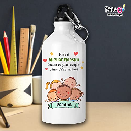 Babloo Borraccia in Alluminio Miglior Maestra Personalizzata con Nome Ideale come Regalo Maestre Fine Anno 500 ml