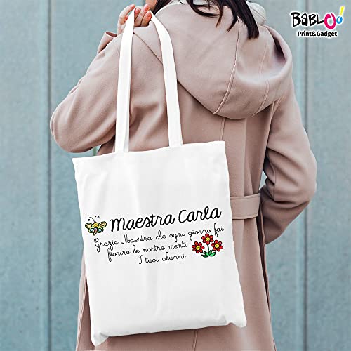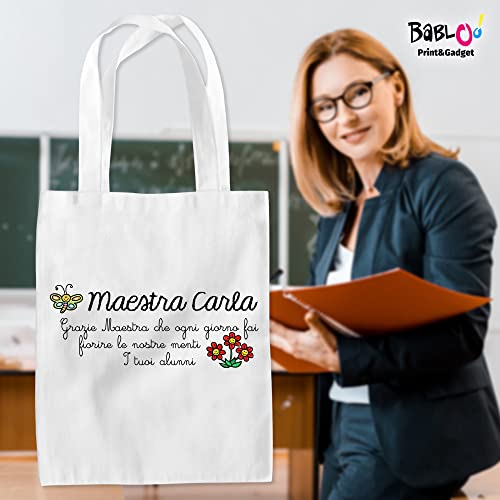 Babloo Borsa Shopper Shopping Bag per Maestre grafica Grazie Maestra personalizzata con Nome Idea Regalo Maestra Fine Anno Scolastico