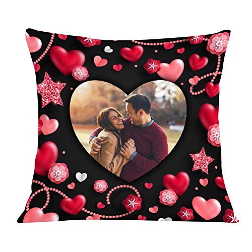 Babloo Cuscino Love Idea Regalo Originale per Fidanzati, per Lui, per Lei, Anniversario, Matrimonio Star and Hearts Personalizzato con Vostra Foto (50x50cm)