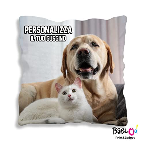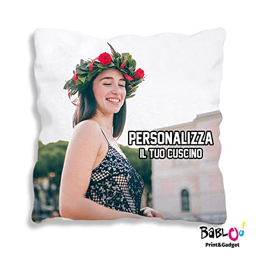 Babloo Cuscino Poliestere Quadrato con Imbottitura Personalizzato con Foto, Logo, Grafica o Testo Personalizzabile Idea Regalo Simpatica ed Originale 40x40cm