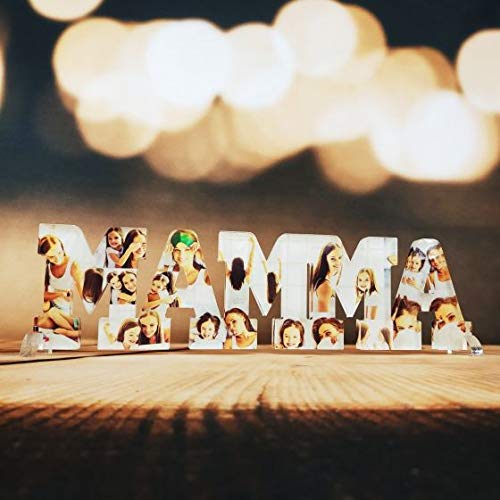 Babloo Targa per la Mamma in Plexiglass Scritta Mamma Personalizzabile con Foto Idea Regalo Festa della Mamma (12X42cm)
