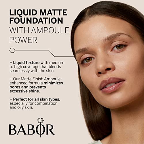 BABOR MAKE UP Matte Finish Foundation, fondotinta leggero e opacizzante con siero per una copertura da media ad alta, nasconde le irregolarità, 30 ml