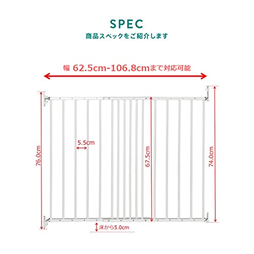La barriera è completamente regolabile e si adatta a un'ampia varietà di aperture da 62,5 cm a 106,8 cm