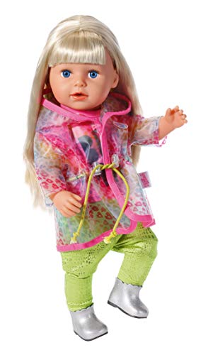 Stivali e pantaloni: baby born indossa stivali in gomma glitter argento in modo che possa saltare attraverso le pozzanghere con facilità. Basta uno sguardo ai pantaloni verdi con puntini lucidi per far uscire il sole da dietro le nuvole