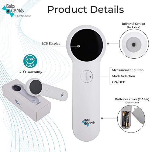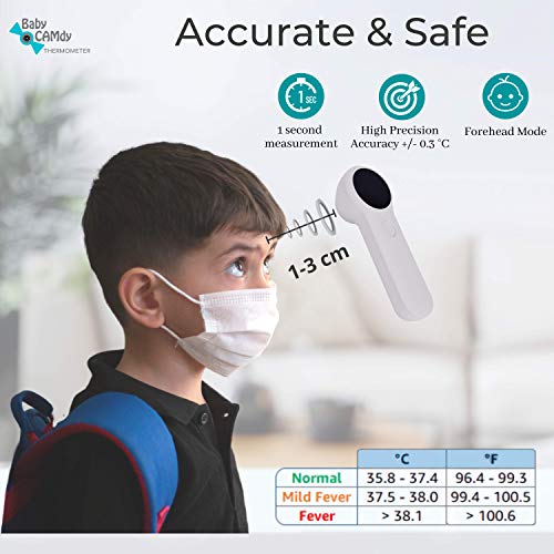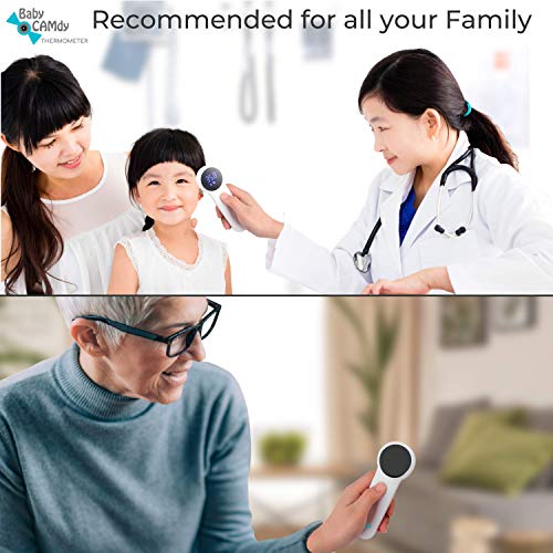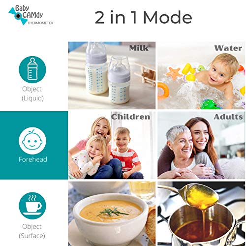 Baby CAMdy - Termometro Infrarossi Digitale Bambini e Adulti⎮2 in 1 Temperatura Frontale, Liquidi e Oggetti⎮Temperatura di Lettura Istantanea Senza Contatto⎮Allarme Febbre