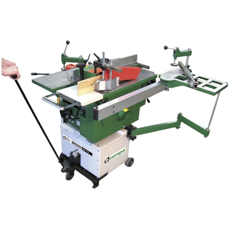 Combinate lavorazione legno• Pialla a filo• Pialla a spessore• Sega circolare• Toupiè verticale• Cavatrice• Carrello per squadrare Motore ad induzione 2200 Watt (pialla) ;