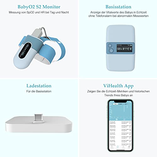 Baby Monitor, Wellue Baby O2 S2 con Misurazione dei Valori di Ossigeno e Frequenza Cardiaca con Stazione Base, Movimenti del Corpo, Report in Formato PDF o CSV per Neonati e Bambino